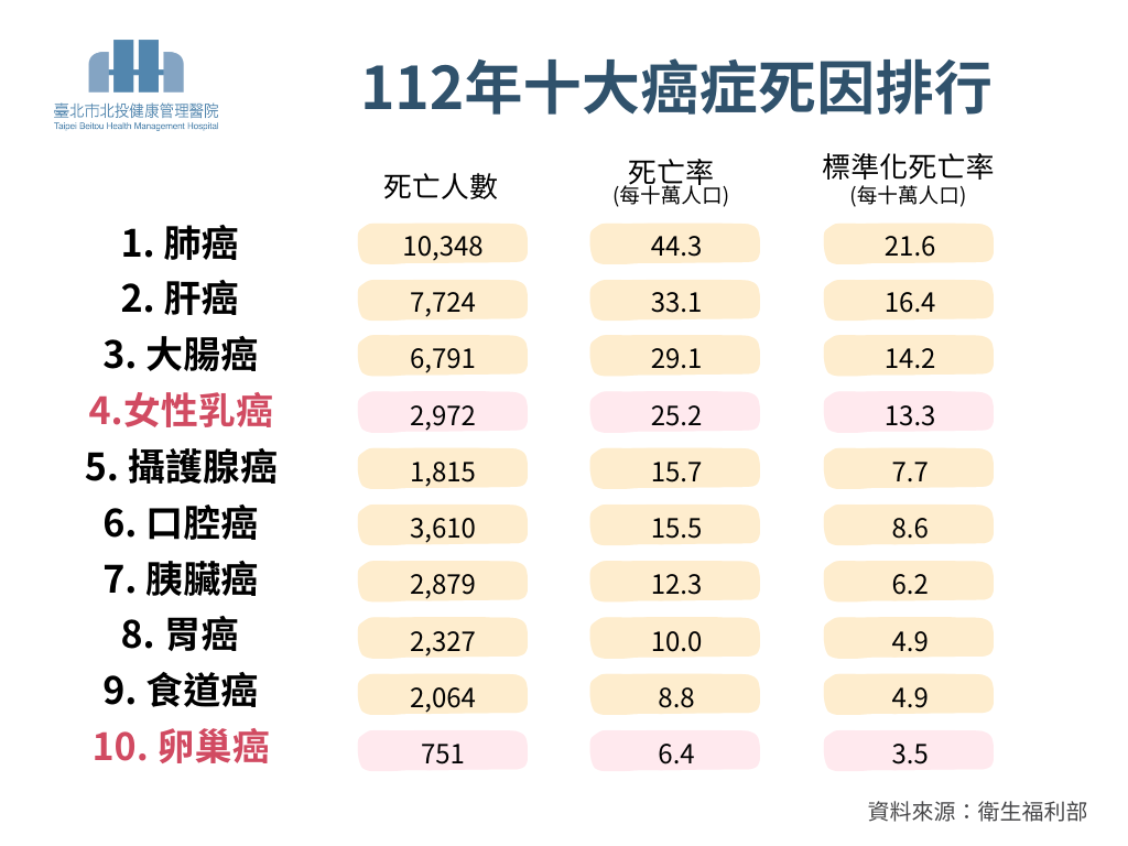 根據國健署公布最新的十大癌症死因, 其中竟然有兩項是女性專屬癌!